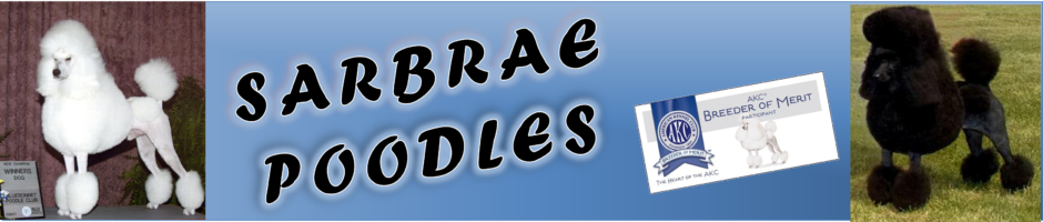 Black and white standard Poodles.. Black miniature Poodles..