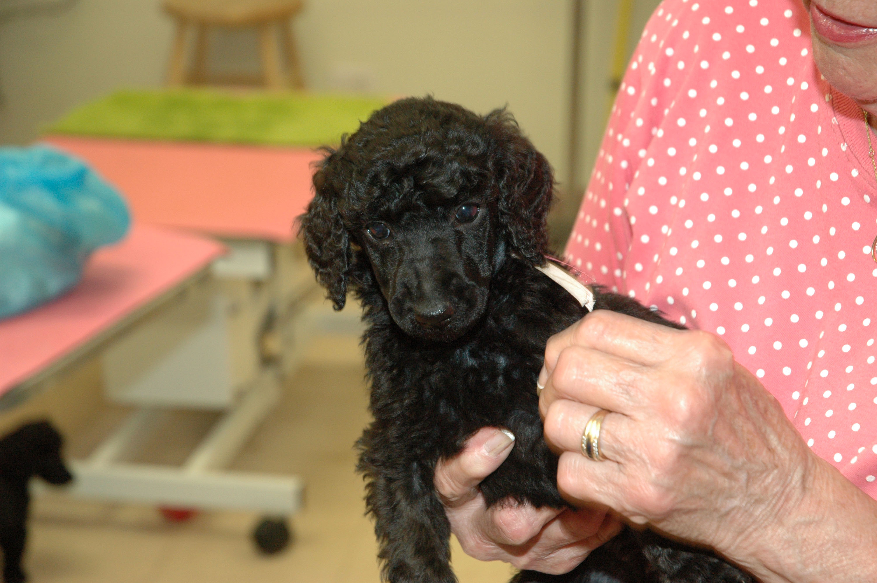 Black and white standard Poodles.. Black miniature Poodles..