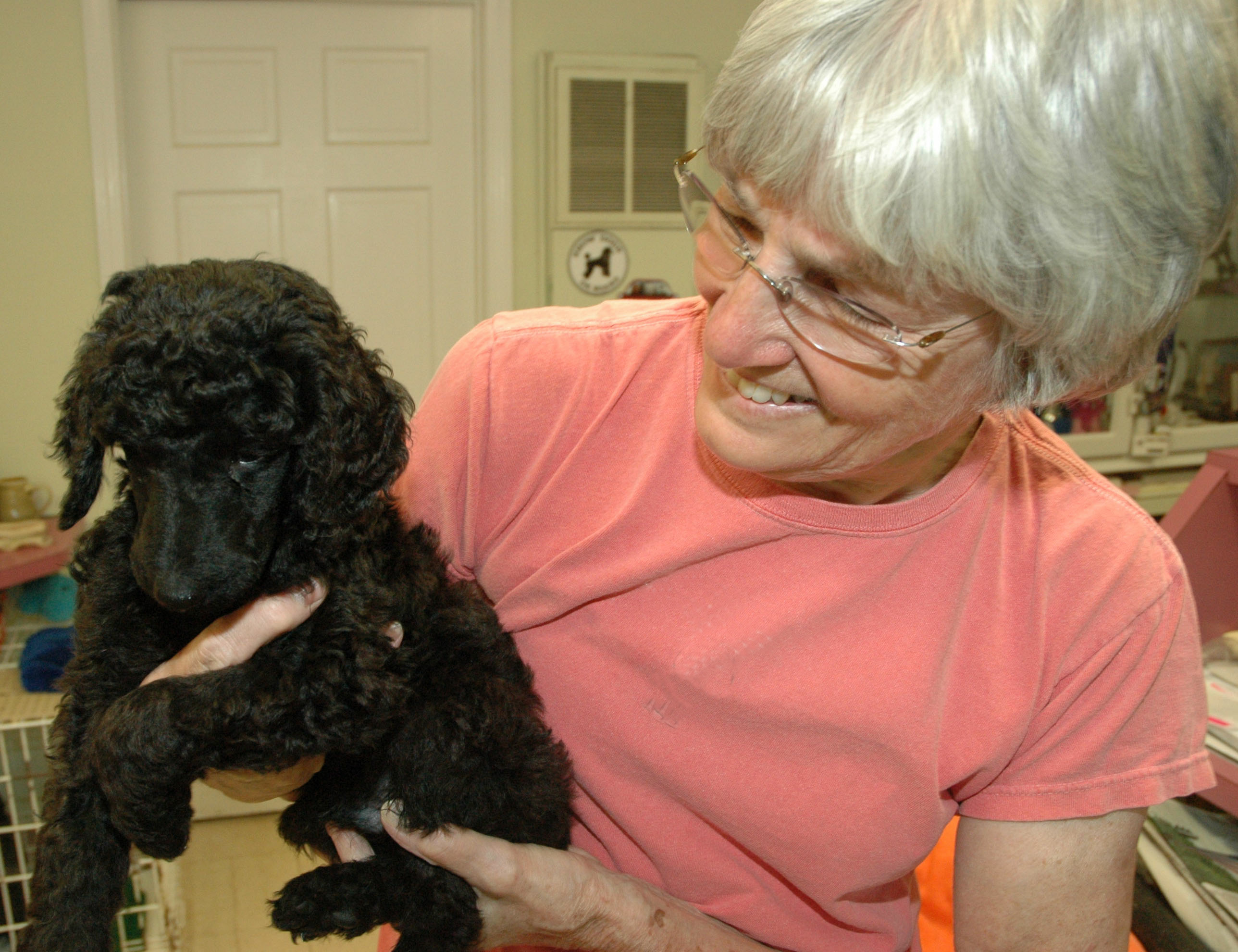Black and white standard Poodles.. Black miniature Poodles..
