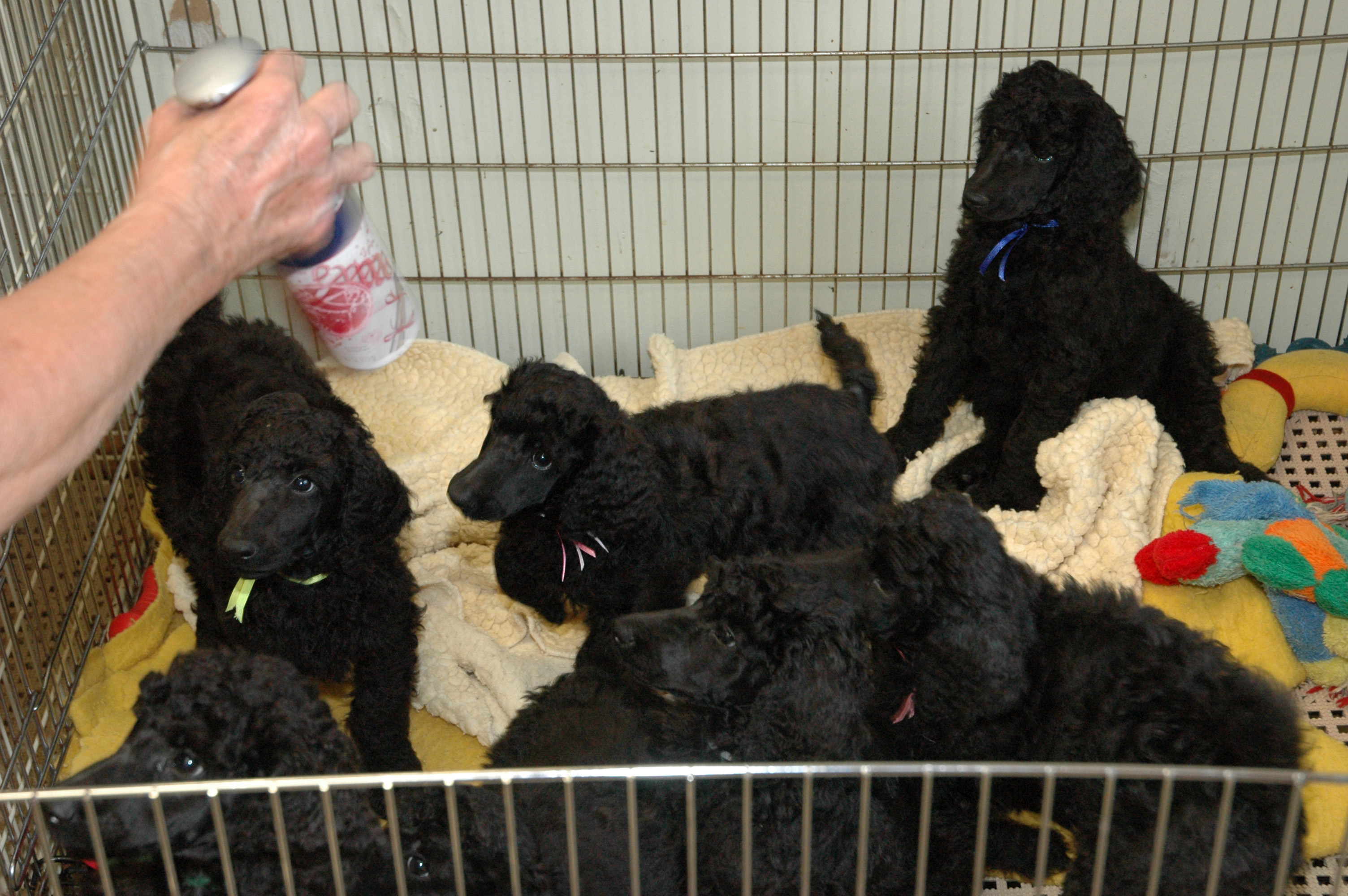 Black and white standard Poodles.. Black miniature Poodles..