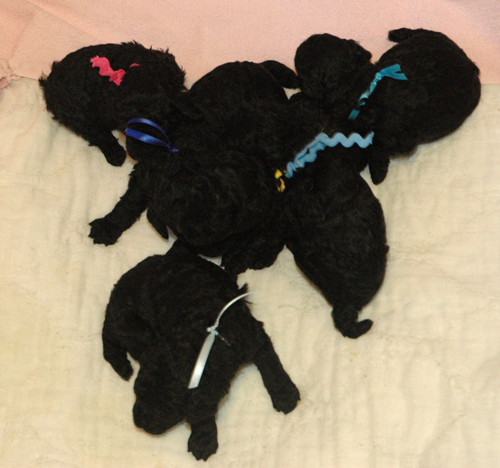 Black and white standard Poodles.. Black miniature Poodles..