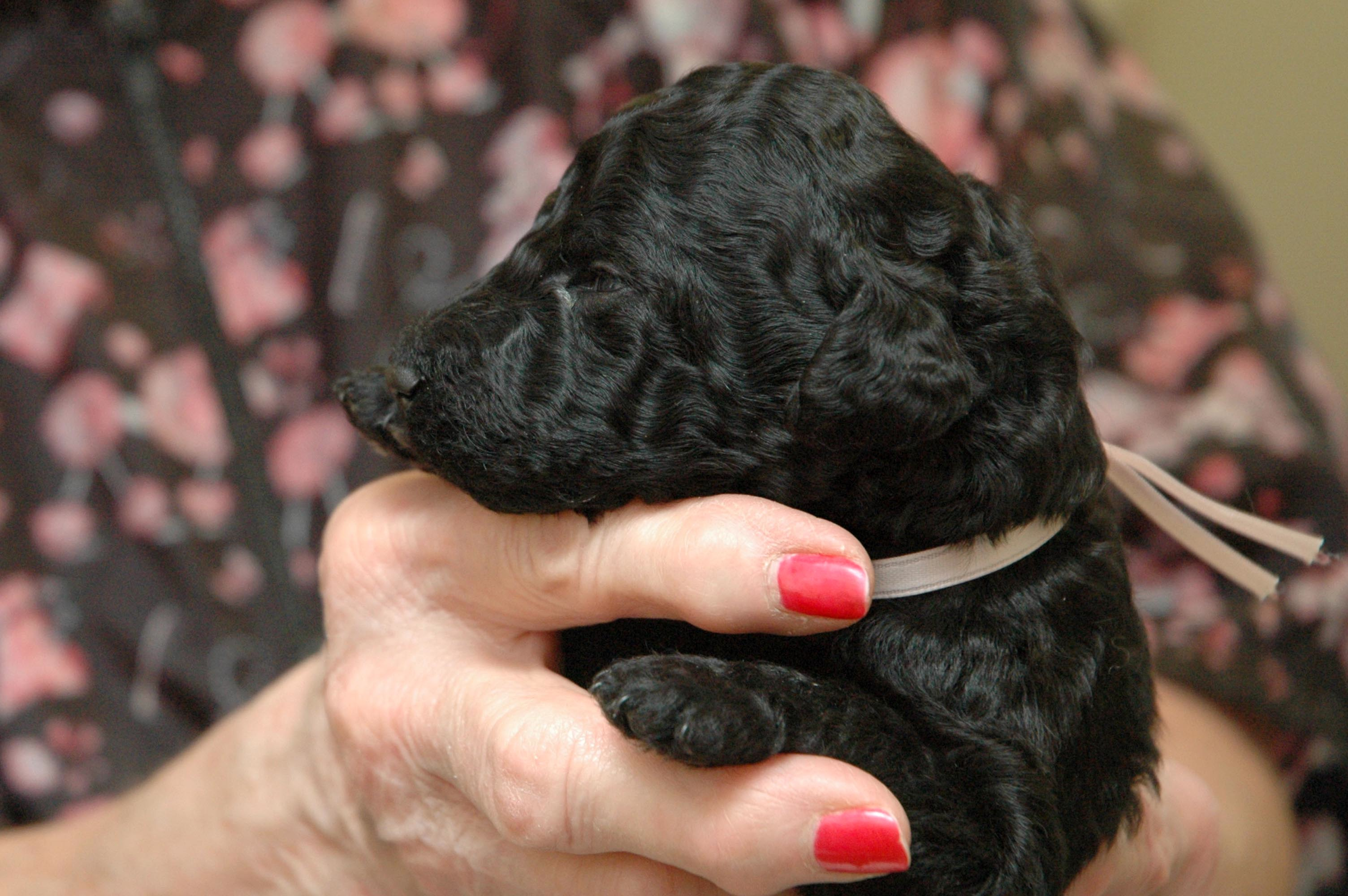 Black and white standard Poodles.. Black miniature Poodles..
