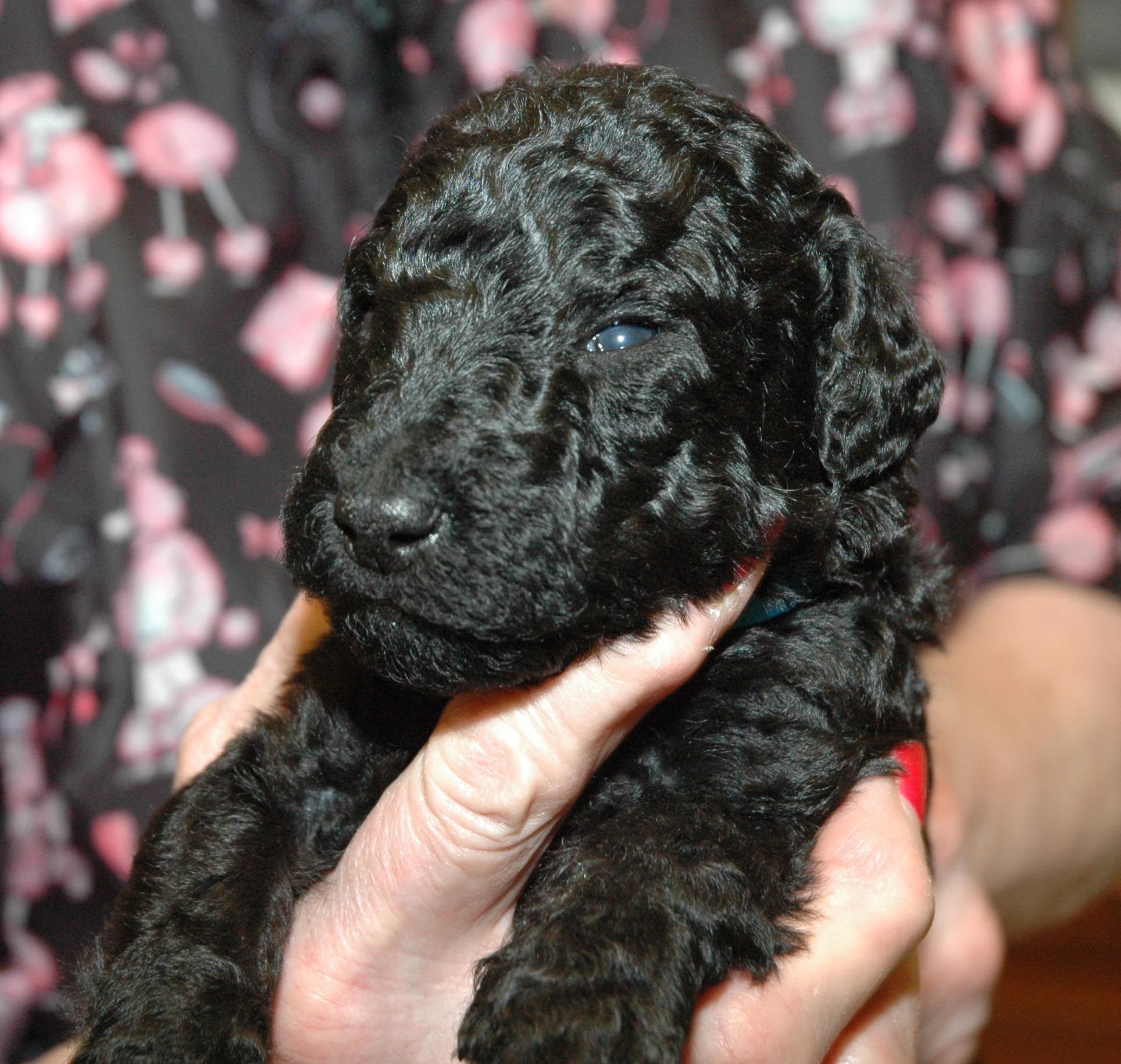 Black and white standard Poodles.. Black miniature Poodles..