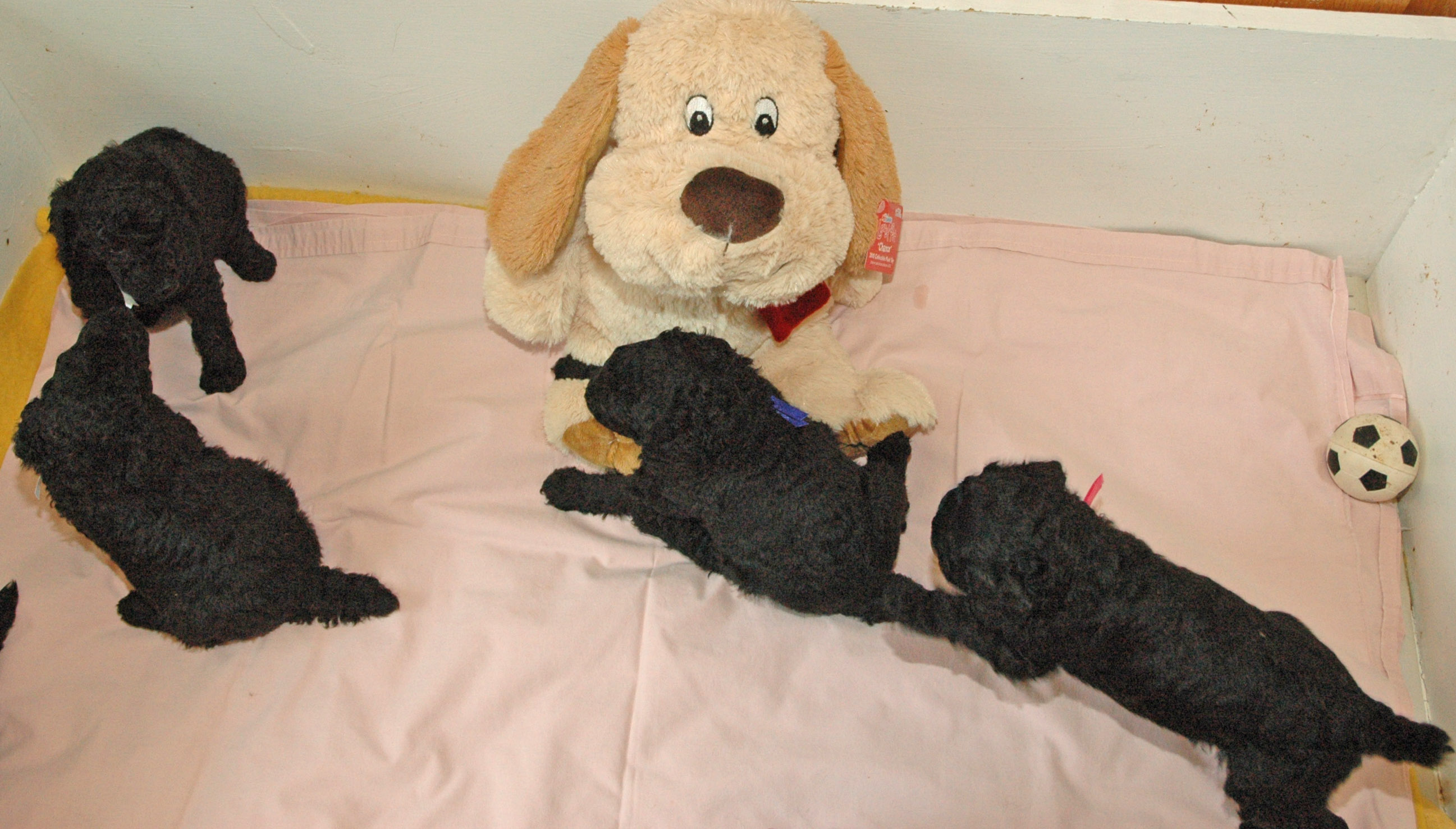 Black and white standard Poodles.. Black miniature Poodles..
