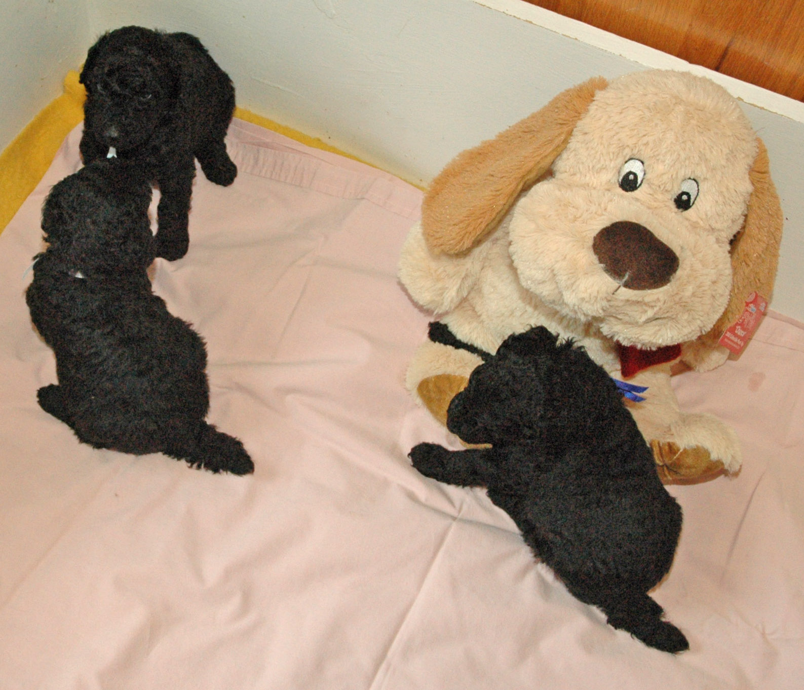 Black and white standard Poodles.. Black miniature Poodles..