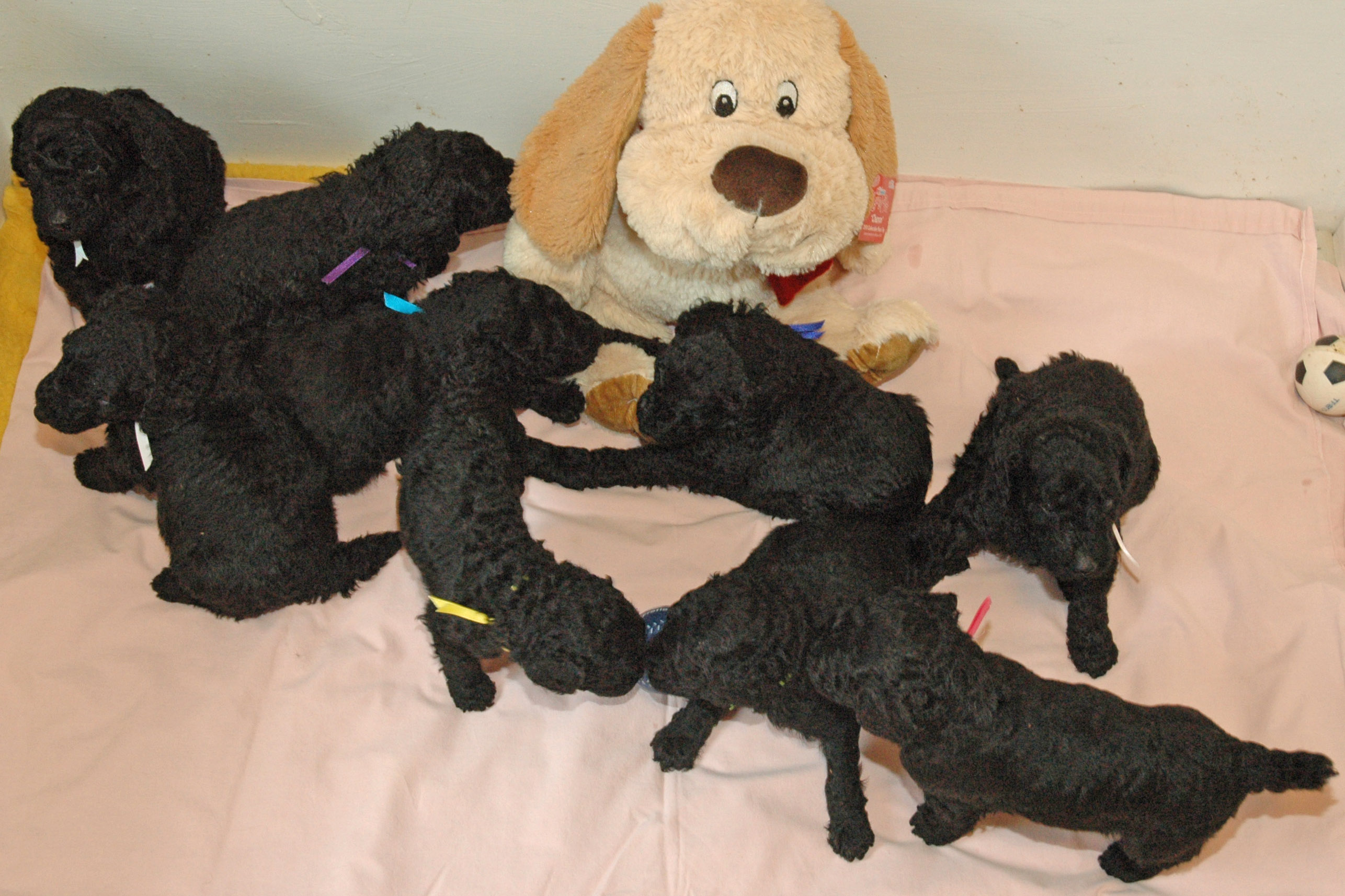 Black and white standard Poodles.. Black miniature Poodles..