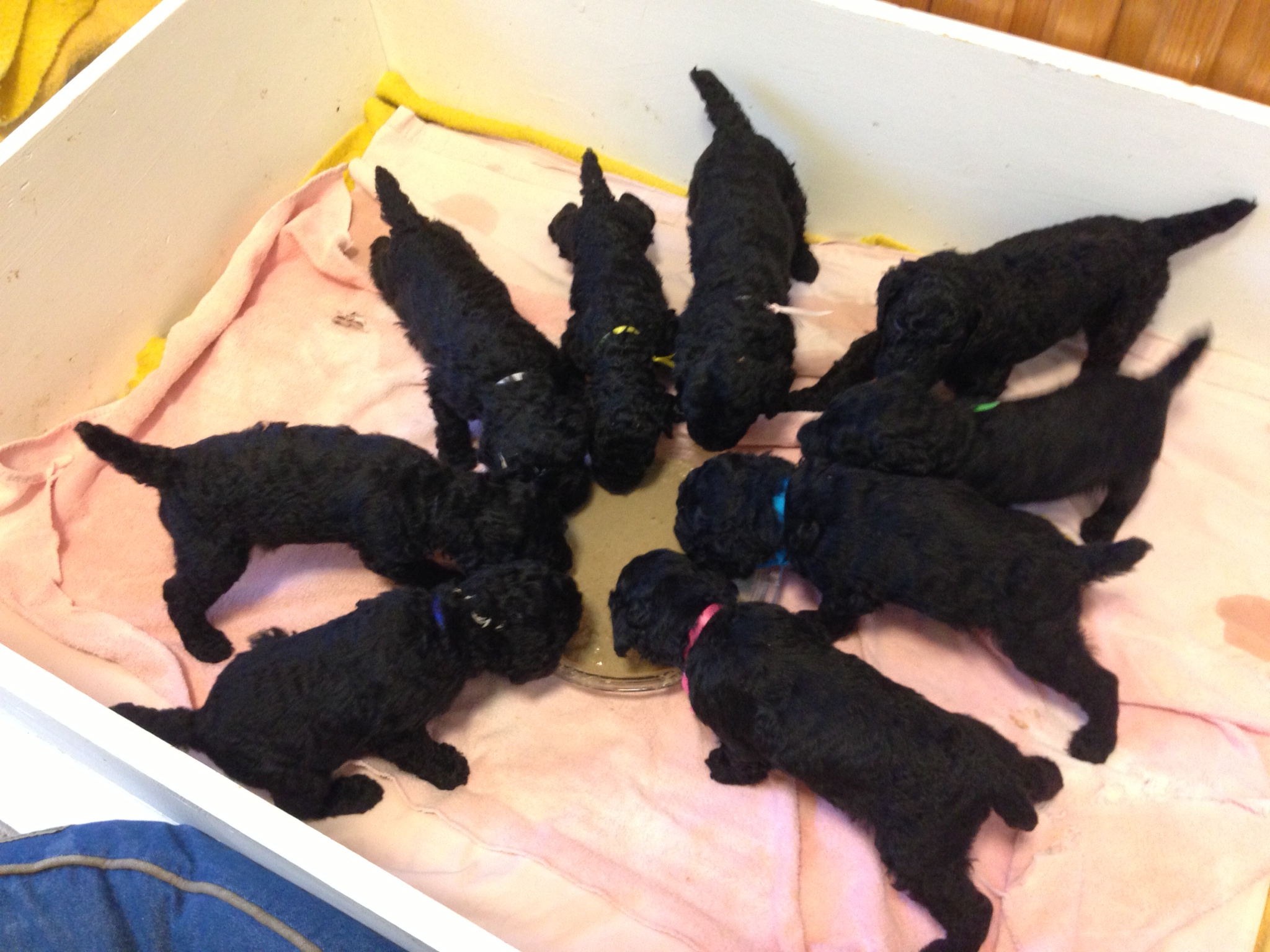Black and white standard Poodles.. Black miniature Poodles..